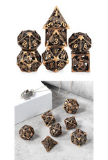 Polyhedral dice set of Dice Habit's Hollow Dragon design in brass.