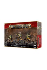 Weirdbrute Wrekkaz carve a path of destruction through the enemy lines, sent into a frenzy by the Waaagh!'s anarchic energy. Their strange Weirdbrute masks pulsate with the same maddening power, numbing the Wrekkaz to all but the most grievous of wounds and ensuring they can unleash absolute carnage upon the foe in all directions before they are finally laid low.